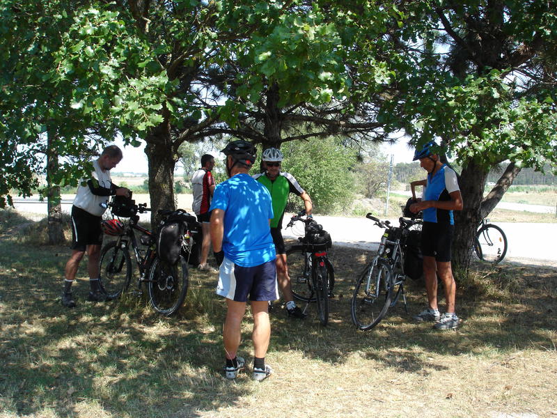 Samstag – 8.8.2015. Es war soweit. Vom Semmering runter bis Bruck a. d. Leitha. Einmal anders weil kein offizieller Radweg. Ich hatte die Gelegenheit meinen Freunden die Vorteile moderner Navi Technik näherzubringen. Den langgezogenen Adlitzgraben entlang und den ganzen Schwazatalradweg bis zur ersten Rast ohne einmal auf die Karte zu sehen. Meine Gattin Irmgard überraschte uns mit einem köstlichen Picknick. Nach einer Trickreichen Fahrt durch Wr. Neustadt war das meiste bereits überstanden. Am Eurovelo 9 konnte Fritz das Ruder übernehmen. Die letzten Kilometer auf der B10 bis Bruck/L hat uns unsere letzte Kraft gekostet.